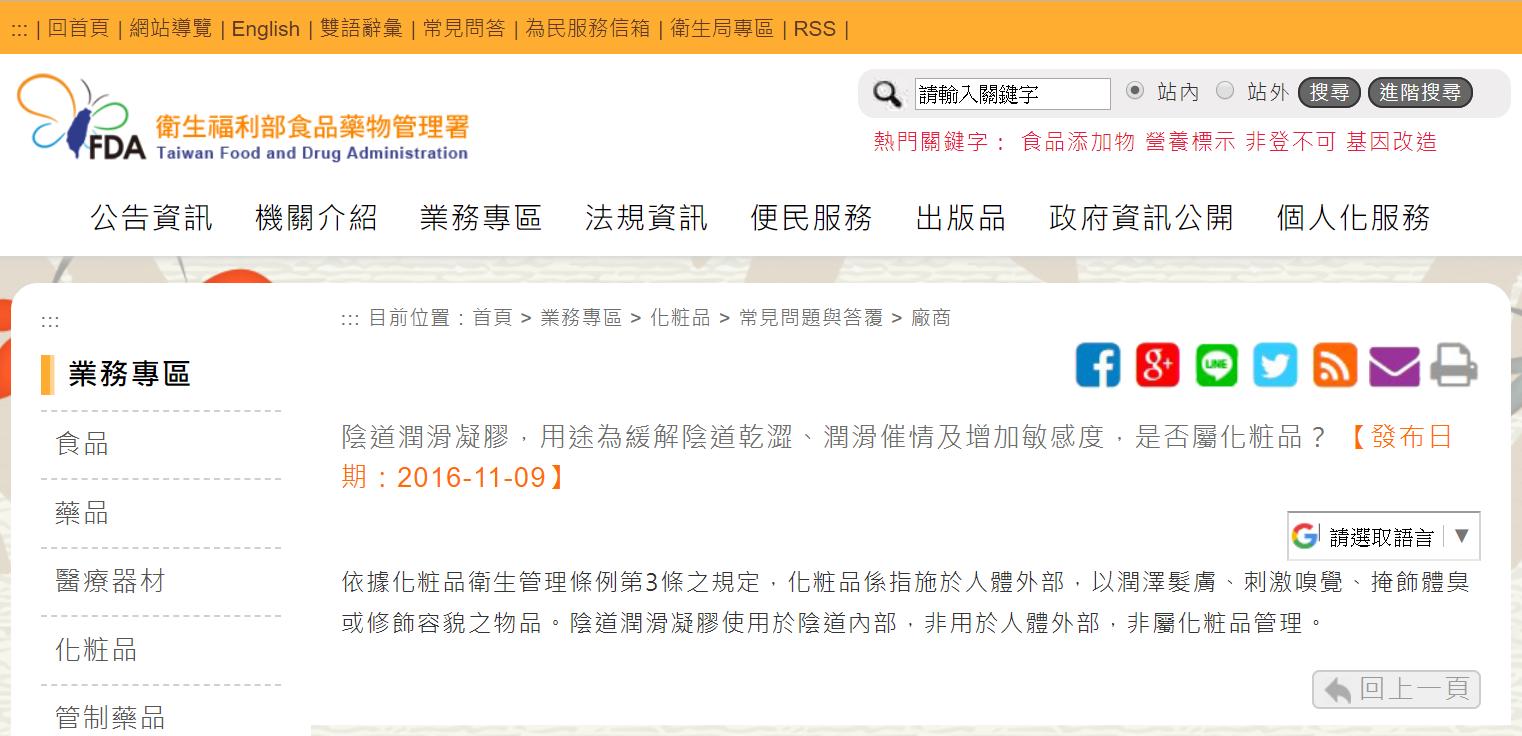 在私密處裡面用的潤滑產品,已經算侵入性產品了,因此化粧品工廠是不能生產的,也不能當成化粧品產品來販售,從法規面來看,這非常清晰,沒有模糊地帶。